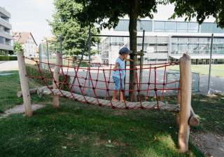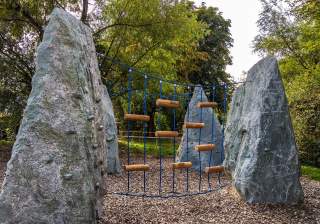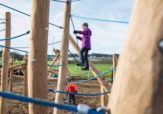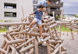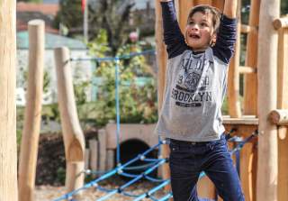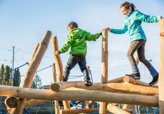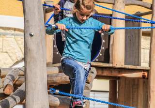 Es gibt unzählige Möglichkeiten auf unseren Spielplätzen, hoch hinaus zu klettern oder seine Balancierfähigkeiten zu trainieren. Unsere Anlagen fördern die koordinativen Fähigkeiten.