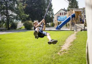 Kinder lieben schwereloses Schweben und auf einer Seilbahn mit rasanter Geschwindigkeit hinunterzusausen.